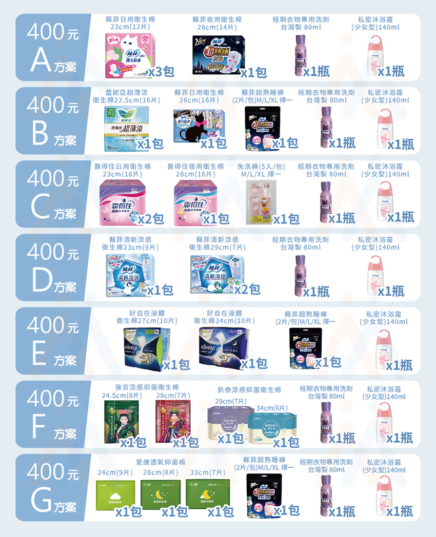 生理用品-200元B方案 參考價 : $200 數量 : 加入詢價車 產品敘述 幫您包裝好出貨 另有其他方案可供選擇 相關產品 好自在 液體衛生棉 27cm(10片入/包) 衛生棉-愛康透芯涼感棉28cm(7片) 生理用品-400元D方案 女性骨盆生殖模型 生理用品-400元G方案 初經寶盒 碟片組