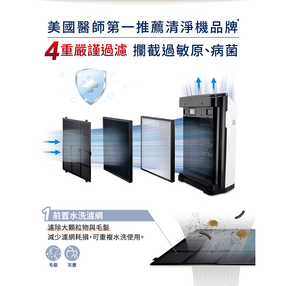 ♦ Honeywell為美國專業醫師推薦第一空氣清淨機品牌(註1),說明Honeywell極佳過濾效果