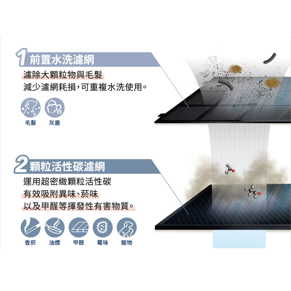 ♦ 顆粒活性碳濾網,除臭效果更佳