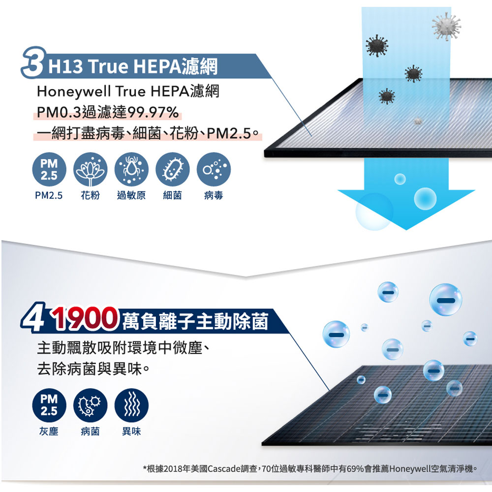 註1:根據2014年11月Cascade調查結果 (此調查報告於美國進行),在向病人推薦空氣清淨機時,95名專業醫師中有89位會推薦使用Honeywell空氣清淨機(此調查報告於美國進行)