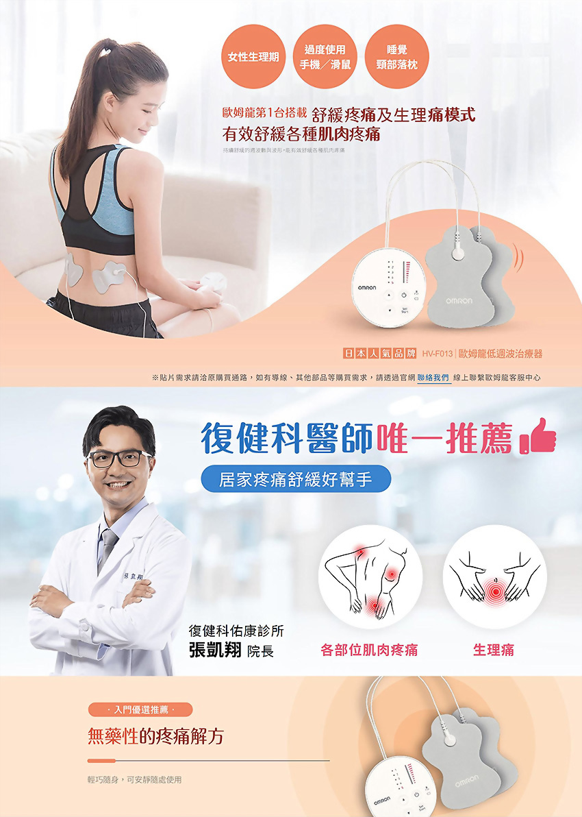 OMRON歐姆龍 低週波治療器 HV-F013 型號 : HV-F013 數量 : 加入詢價車 產品敘述 有效舒緩疼痛 · 雙色、輕巧美型 · 液晶螢幕顯示操作 · 週波數1~238Hz · 深層舒緩 減輕痠痛 · 15段強弱力道自由調整 ·6種部位模式 舒緩全身痠痛 · 3種按摩模式 模擬真人手法 · 長效貼片 可重複使用約300次 (根據個人膚質及使用情況而有所差異) · 內附:長效電極貼片 HV-LLPAD/B型傳導線 · 主機尺寸:約100g · 外型尺寸:長約112x寬約52x縱深約25mm 衛部醫器輸字第037195號 北市衛器廣字第113110036號 相關產品 LEVINA樂維耐 無線式低周波治療儀 RS-18 Model : RS-18 遠紅外線治療器 Model : EQ-A718 多頻道雷射 電刺激治療儀(電療).低週波 LA-200I Model : LA-200I OMRON歐姆龍 溫熱低週波治療器HV-F311 Model : HV-F311 桌上型紅外線燈 Model : MH-270 豪華型紅外線燈 Model : MH-250