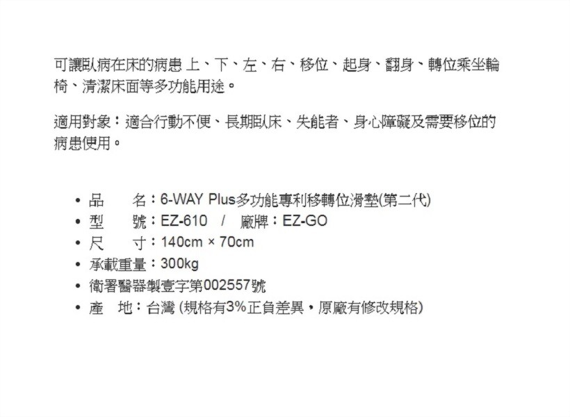 品 名:6-WAY Plus多功能專利移轉位滑墊(第二代)