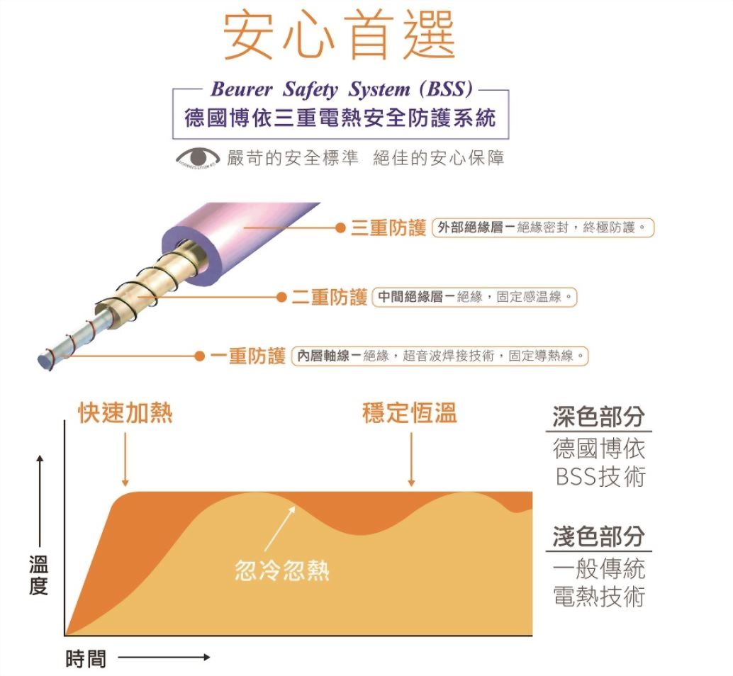 採用德國 beurer BSS 電熱安全防護科技