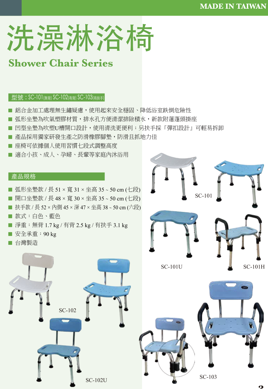 鋁合金有扶手可拆卸洗澡椅 型號 : SC-103 數量 : 加入詢價車 產品敘述 規格 產品規格 長 : 42 cm 寬 : 48.5 cm 座高 : 37.5-50 cm (六段調整高度) 材質 : 鋁合金 顏色 : 藍色 淨重 : 3 kg 安全承重 : 90 kg 產地: 台灣製造 相關產品 鋁合金收合沐浴便器椅 Model : FC-201-B 固定式洗澡便器椅/便盆椅 Model : SC-201 可躺式折合洗澡便器椅/洗頭椅/便盆椅 Model : SC-301 鋁合金ㄇ型助行器 Model : JK-G001 銀髮族健步車 Model : F238 鋁合金可躺式折合洗澡便器椅-藍 Model : SC-301-B