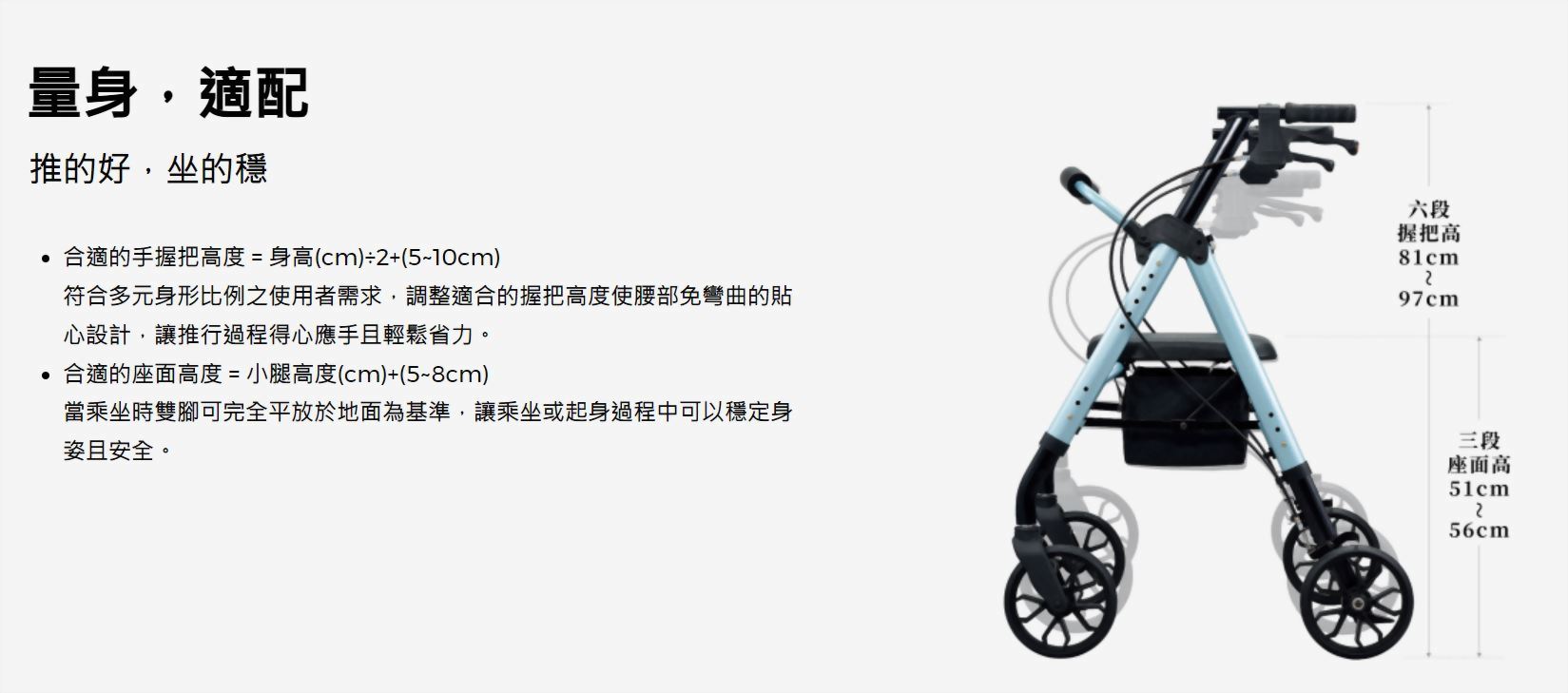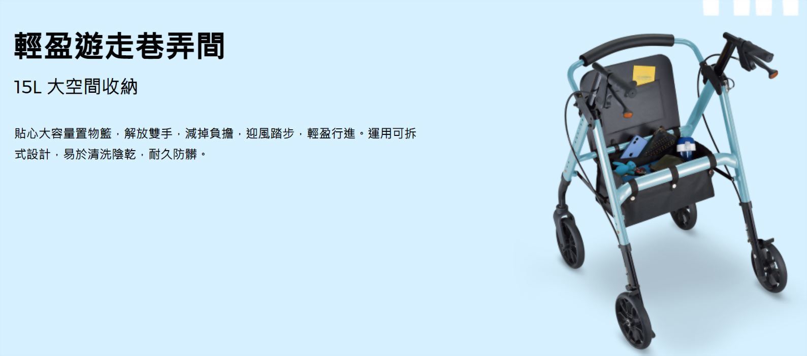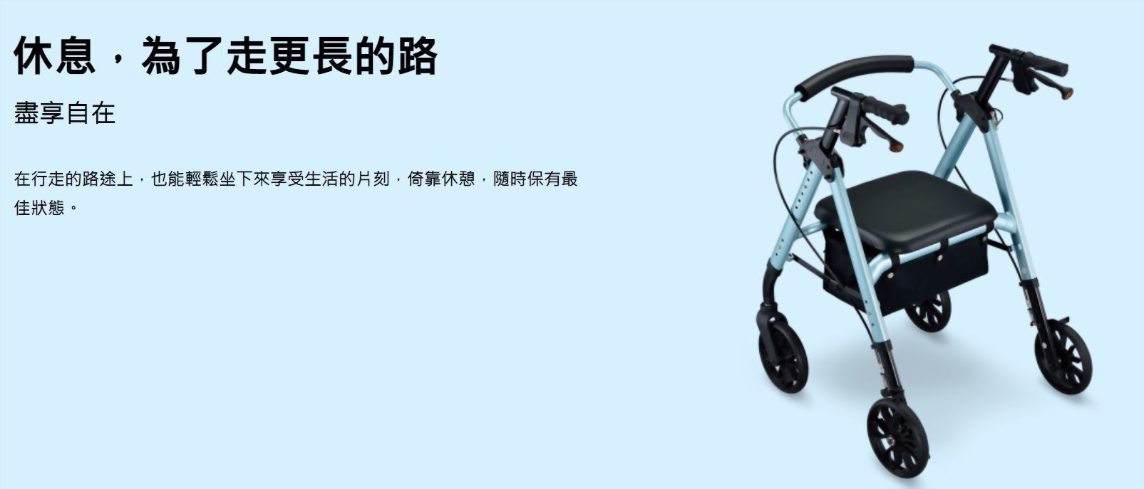 此外,透過簡易收合助步車的功能滿足使用者在多種環境下的使用需求。